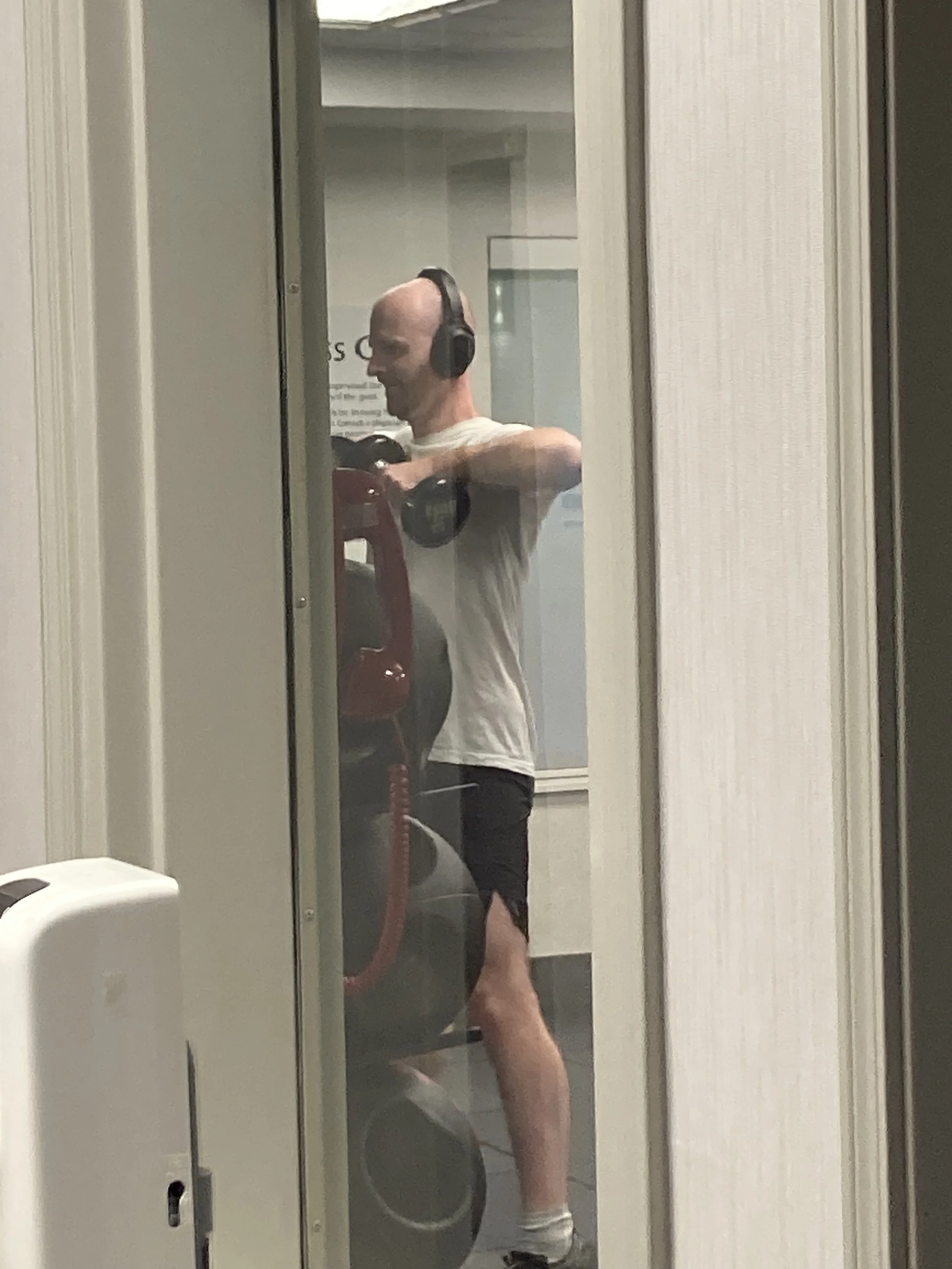 Tristan hit the hotel gym and this time I was there to capture the evidence.