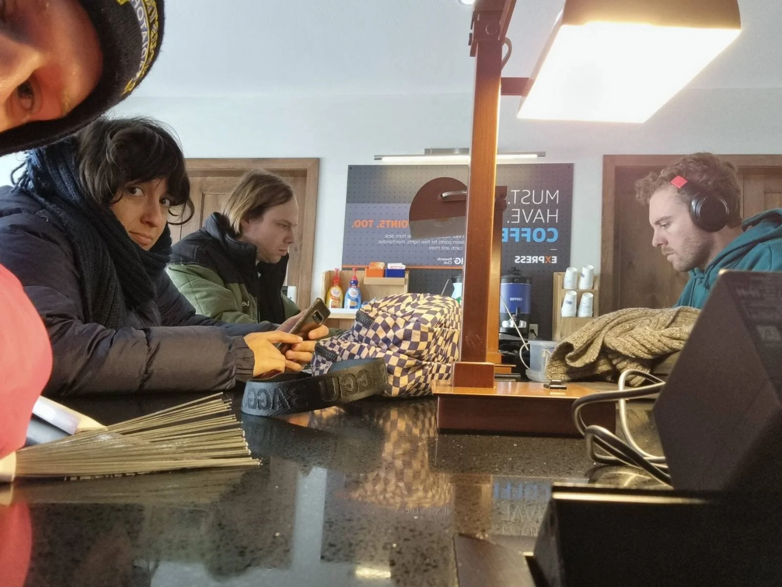 We all spent some quality time in the hotel lobby, enjoying a warmth that didn’t quite exist on the bus. There was a high quality playlist on. Mostly pop country music which paired well with the Holiday Inn Express 100% Arabica house-blend that we were drinking.