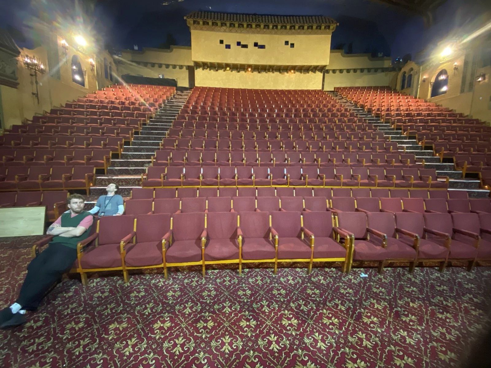 We were given a tour of the building and shown the upstairs part of the theatre, once a huge mezzanine floor but now walled off from the main room and used primarily as a cinema. We also got to hang out in the projection room that looks down over the main theatre and that’s where we watched Womb’s set from.