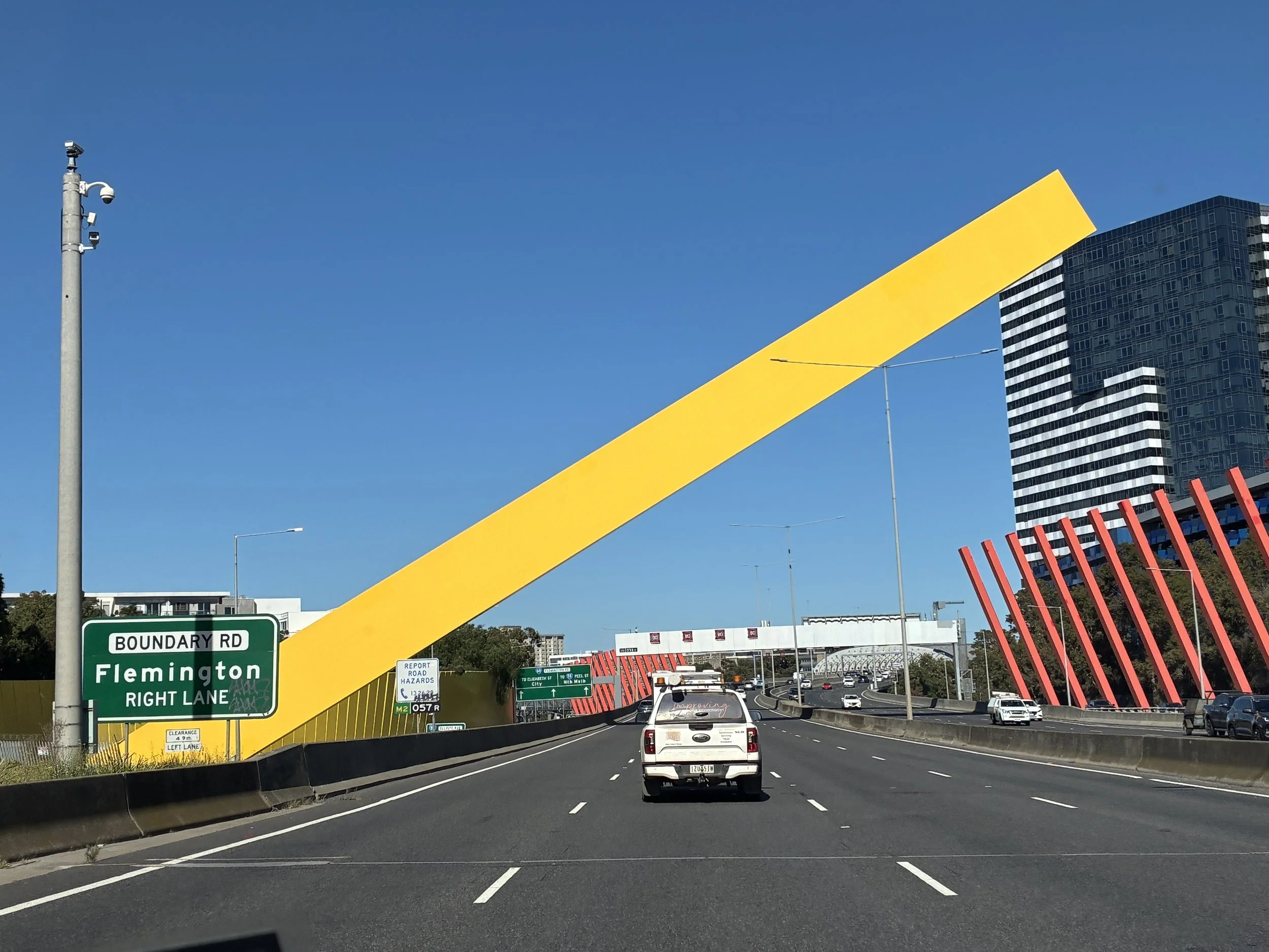 Some of the interesting things we saw were wonky like this yellow pillar near the suburb of Parkville.