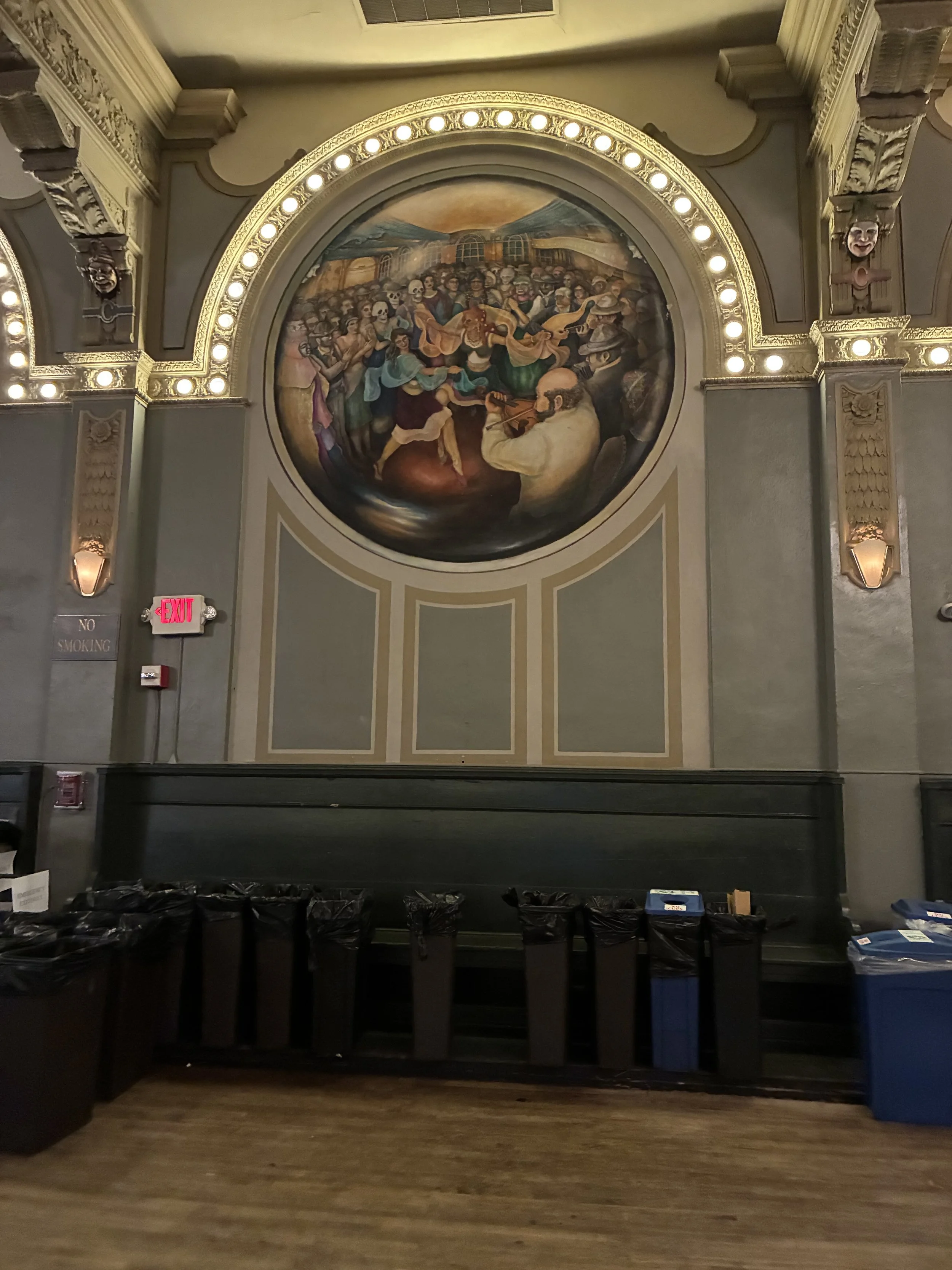 The lighting was phenomenal. Warm sconces, marquee lights that highlighted the architectural features of the room, and of course the grand chandelier which was magnificent and also blocked a good part of the mezzanine floor from seeing the stage.