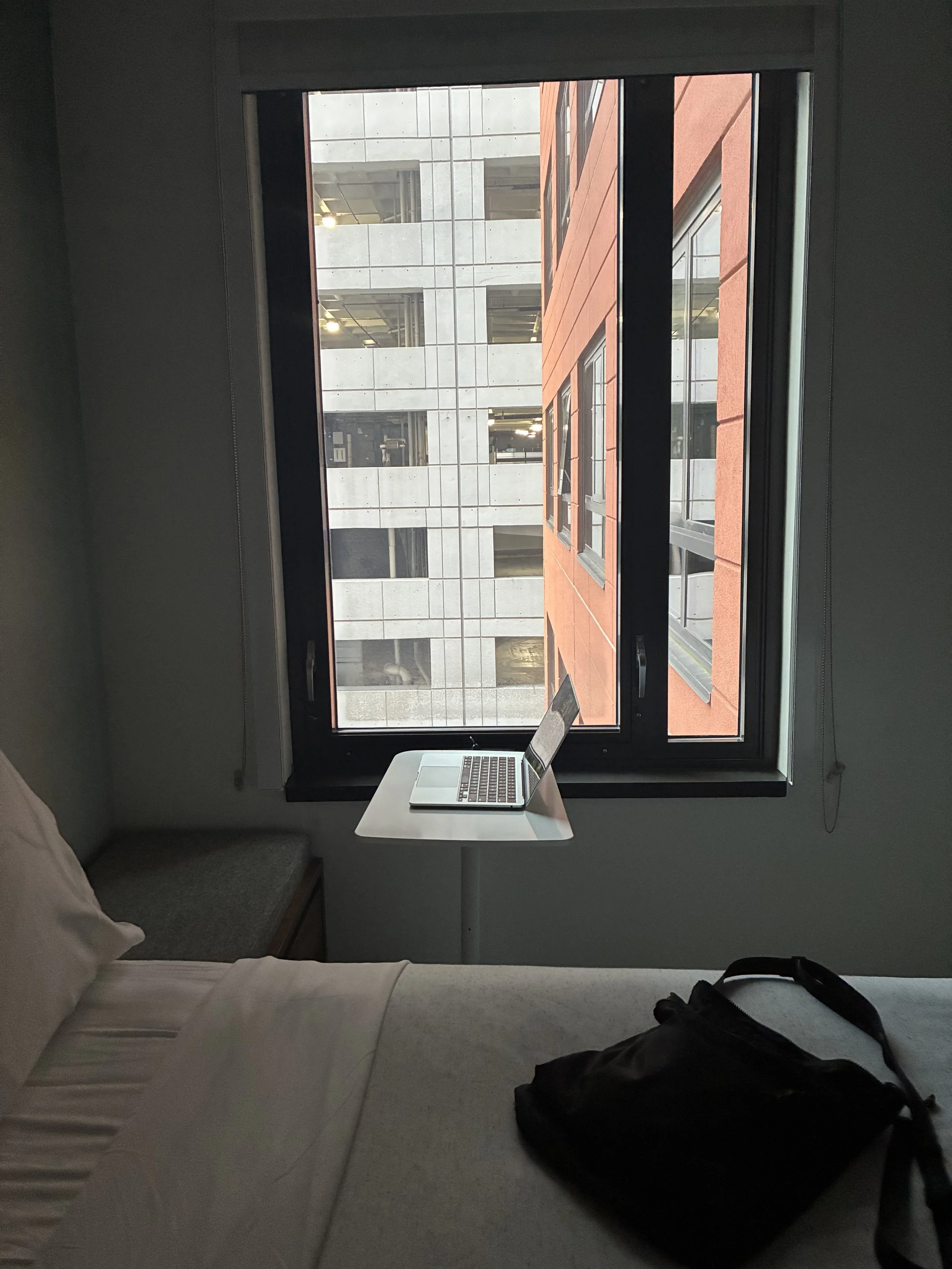 It was 5pm when we arrived at our hotel and we were all fiercely hungry after skipping lunch. (I will point out here that the World Café is not a café that serves food, and that we were warned of this in the advance document that they provided us. Thankfully we were kept alive by a box of granola bars that Annie thoughtfully supplied.) We enjoyed a pleasant early evening wander around the streets of central Philadelphia as we searched for a restaurant, steep light rays streaking between the high rises as golden hour approached, and a good supply of beautifully groomed dogs out enjoying the cooler temperatures. After dinner I spent an hour trying out the writing facilities of my hotel room, eeking every last inch of performance out of the tiny desk and searching for inspiration in the walls of the multistorey carpark out the window.