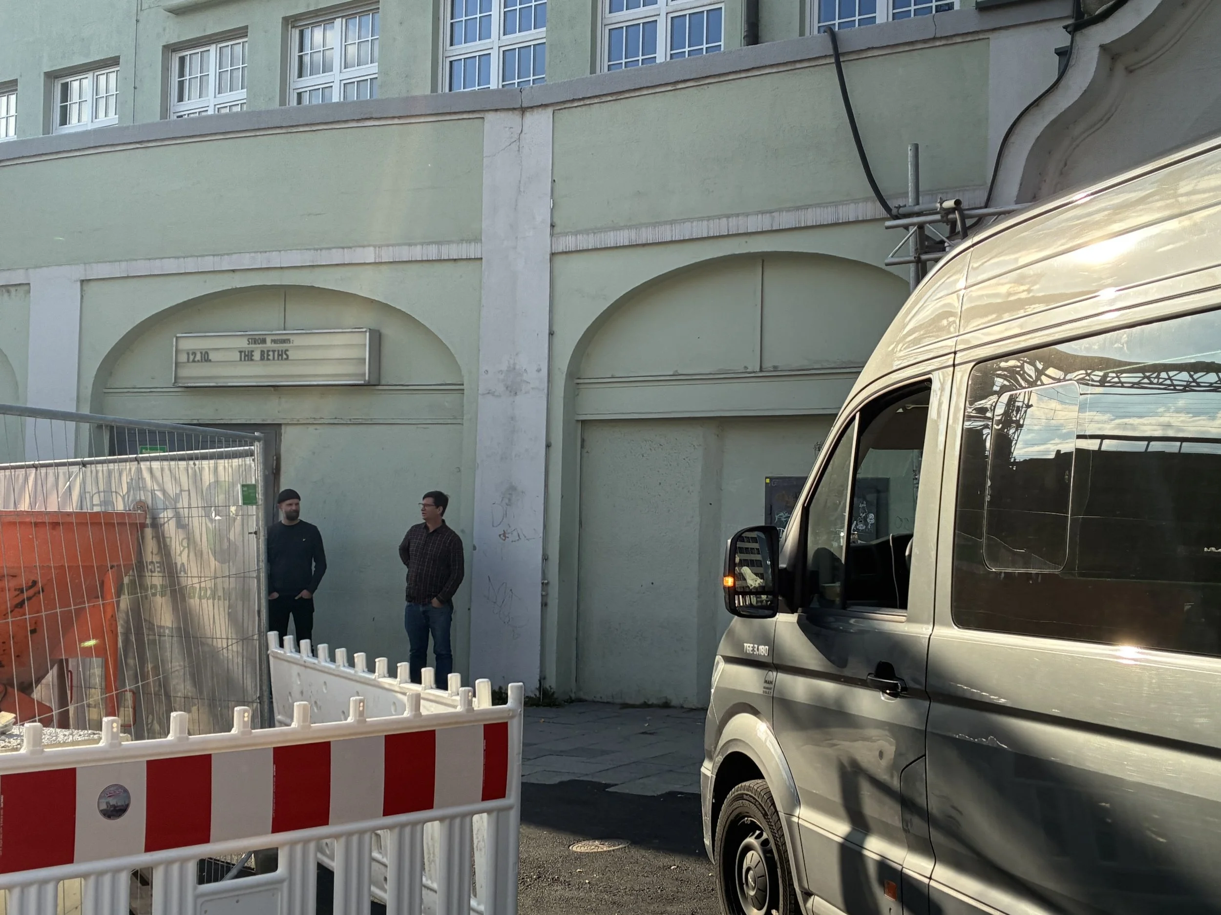 The Munich venue was quite divey. Gabe put it well when he commented “it’s been a while since we’ve played the style of venue where people still draw dicks on the wall”. It was a long, dark room in the basement of a building right next to the train tracks. A low stage was set at one end looking out across a space decorated by decades of laminated gig posters and a floor lacquered with the sugars of thousands of spilled Helles Lagers. The backstage was a familiar scene; the departing remarks of countless bands scrawled across the walls in permanent marker.