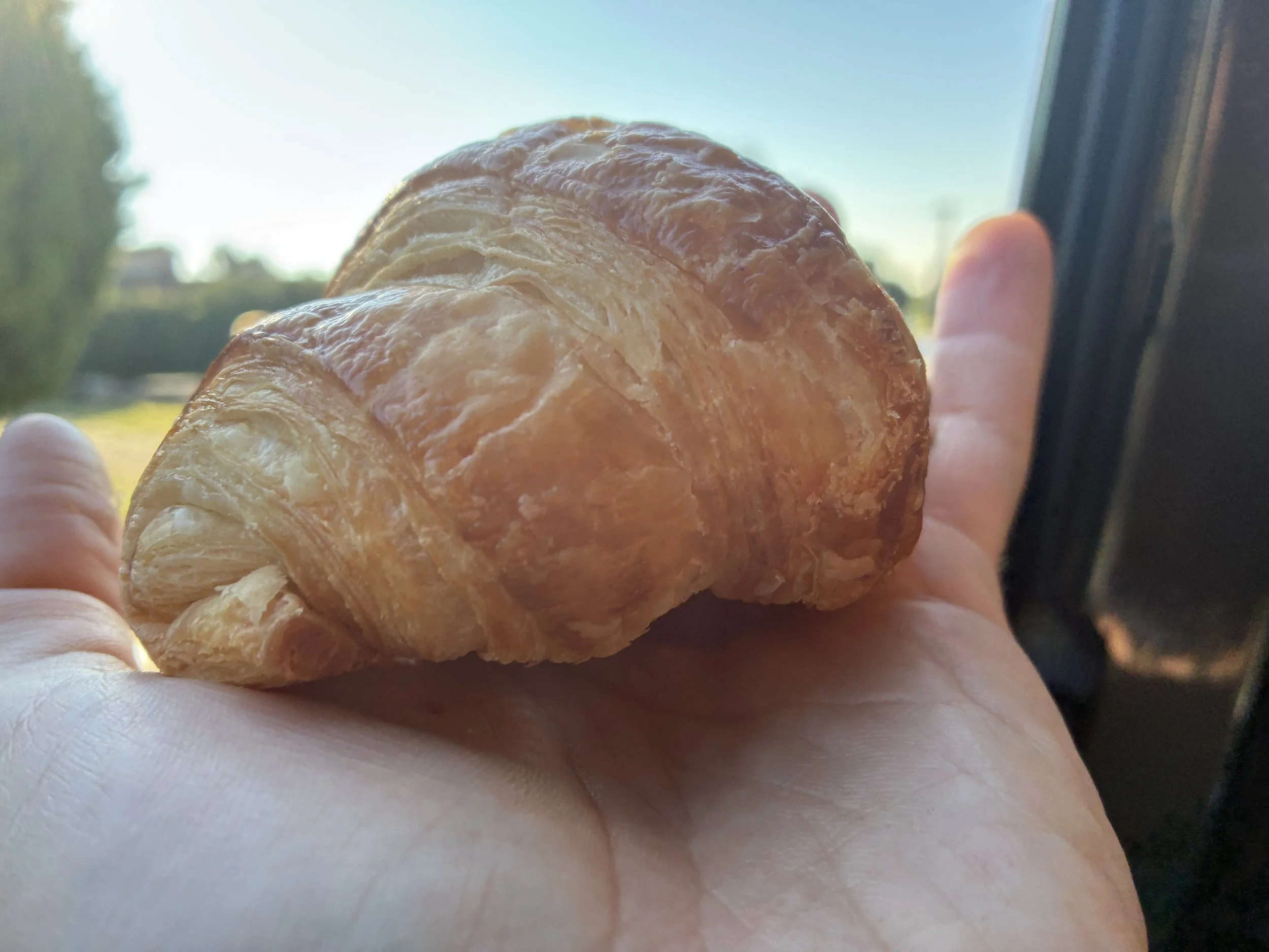 Breakfast came in a bag from the village boulangerie. As we cruised through down the narrow country lanes on our way to the highway I chewed on a croissant and admired the neat rows of olive trees in their stone walled fields.