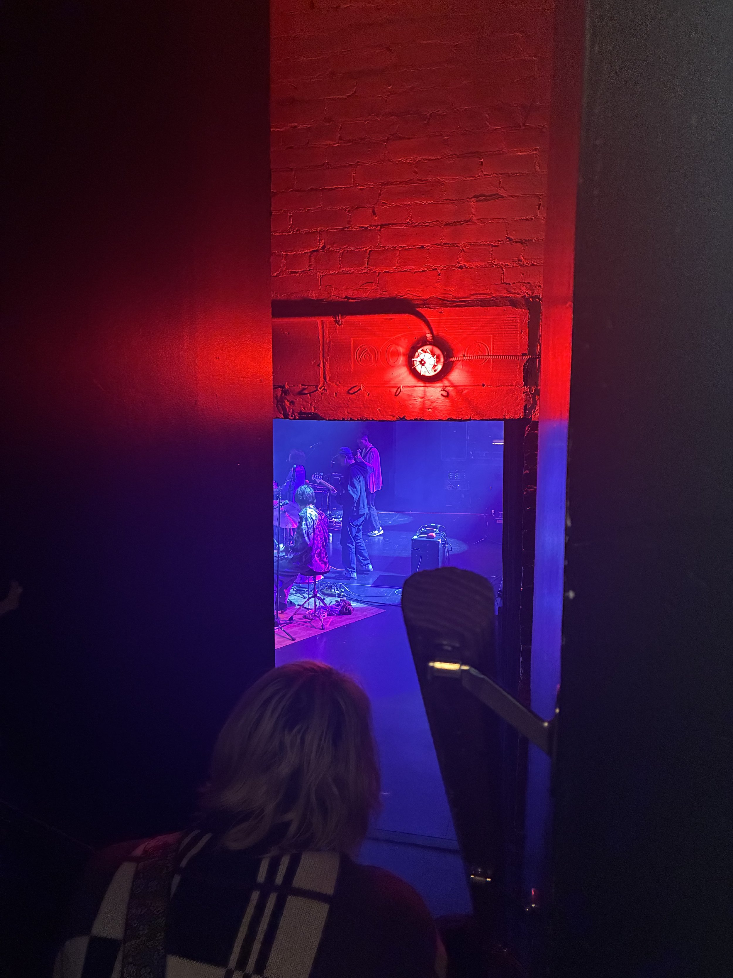 Squeezed into the stairwell watching the Phoebe Rings set.