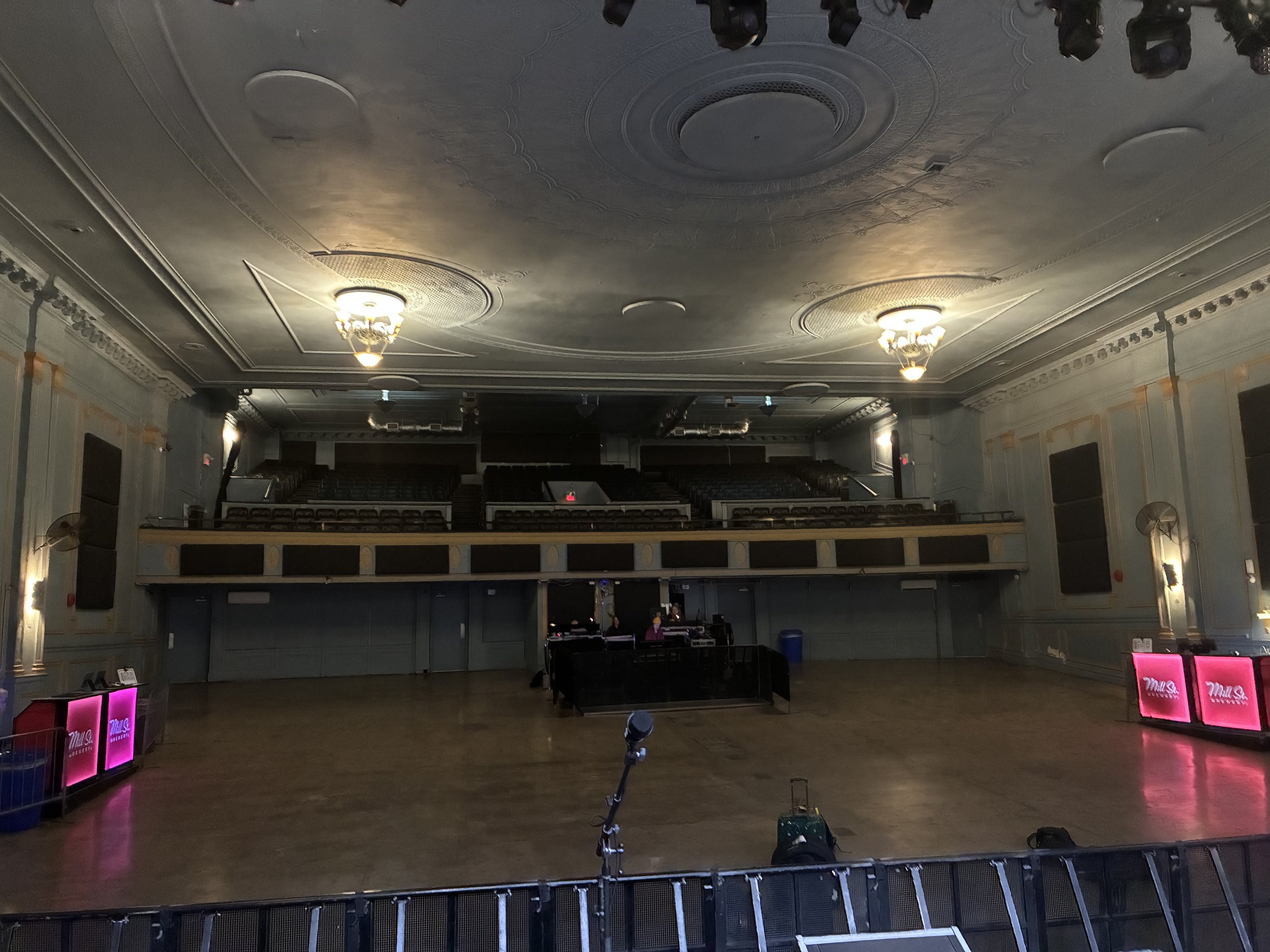 The Danforth Music Hall turned out to be a very fine room for music making. The building dated back to 1919 and served most of its life as a movie theatre, and the sloping cinema floor remains. Between the seated balcony and the standing room downstairs there is space for around 1400 patrons, which seems to be an ideal size for a music show. The backstage was a bit of a warren with a couple of dressing rooms that very quickly became crowded, but this is often the case with old theatres, and you just remind yourself how charming it is and enjoy the closeness with your comrades. There was a window that let in a small amount of natural light, and this was better than most venues manage.