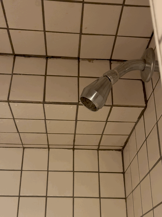 The shower was a powerful device, dangerous for the unskilled user. Leaping from the showerhead was a beam of water so fierce that it threatened to break the skin. This powerful central jet was surrounded by weaker jets of water that were difficult to utilise due to their proximity to the main jet.