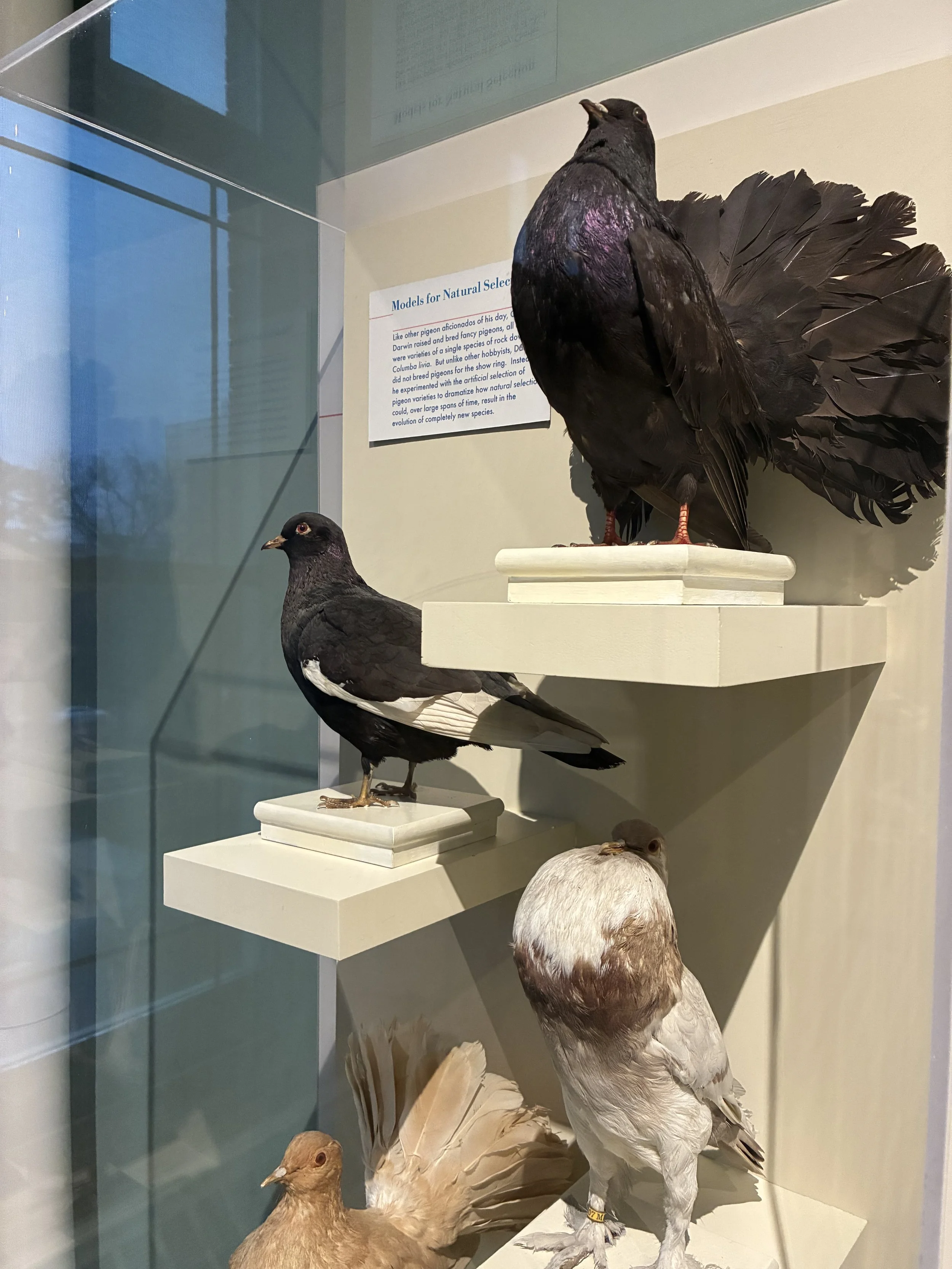 Charles Darwin’s fancy pigeons are the exhibit that no one is talking about. I had never heard of fancy pigeons but it turns out that the National Peristeronic Society, England’s most elite club for pigeon fanciers has been in existence since 1847. Darwin joined this organisation as a way of gathering information on domestic pigeon breeding. He believed that this specific group of animals would be perfect for his study of variation within artificial selection. Although this interest began strictly as a means of collecting facts it was not long before he fell for the charm of these noble animals, a fact demonstrated in his 1855 letter to Charles Lyall - ‘I will show you my pigeons! Which are the greatest treat, in my opinion, which can be offered to a human being’.