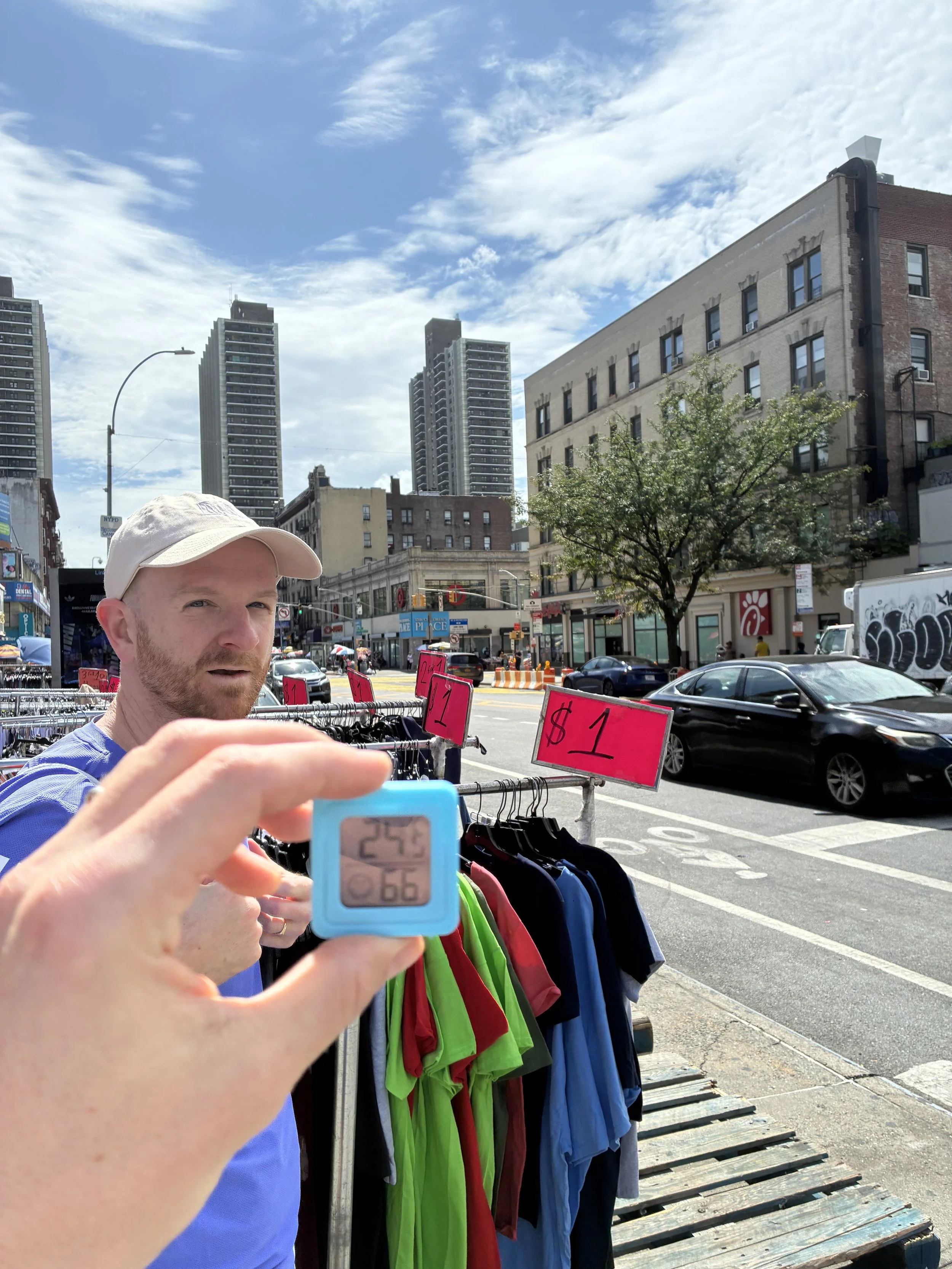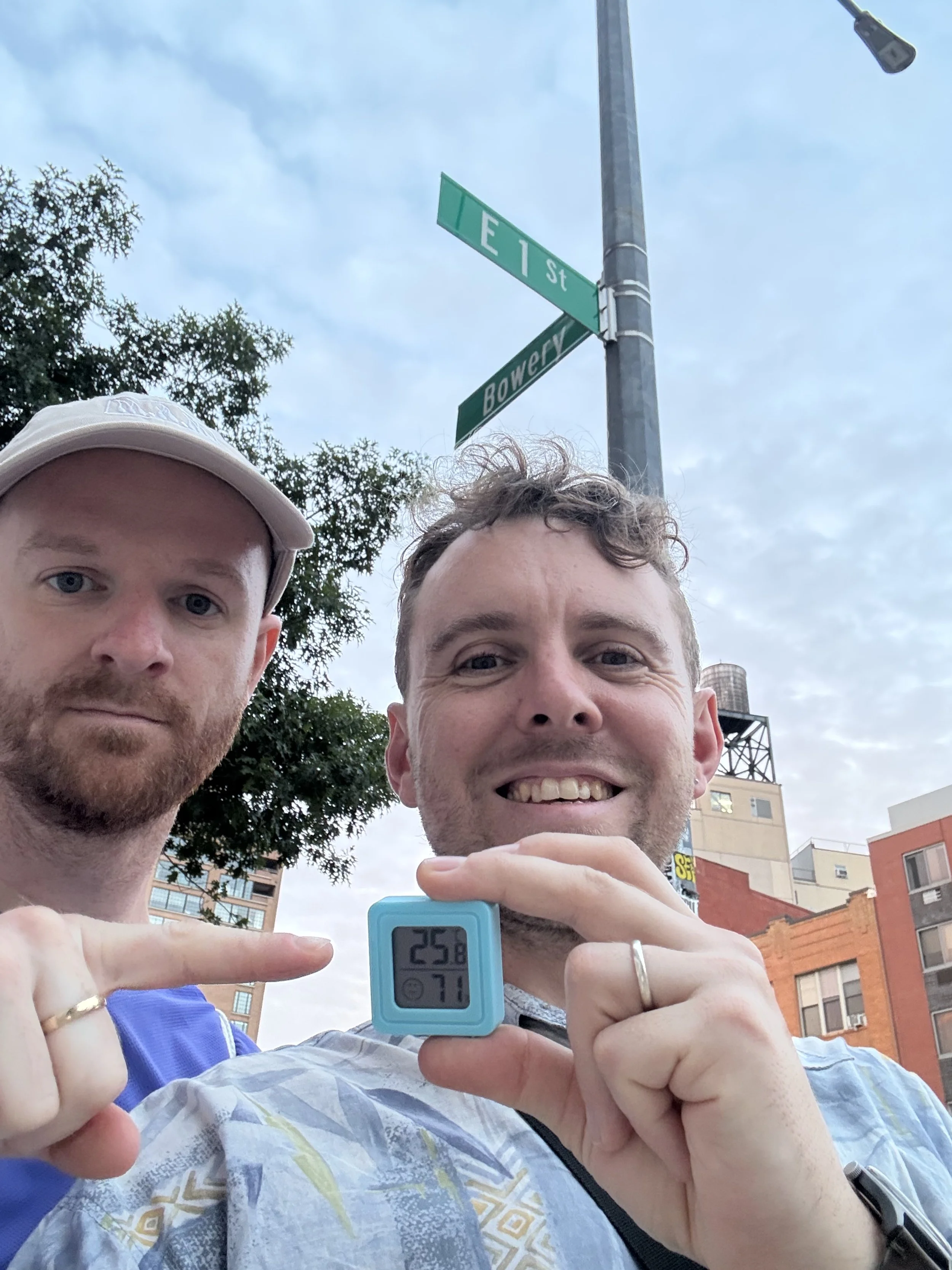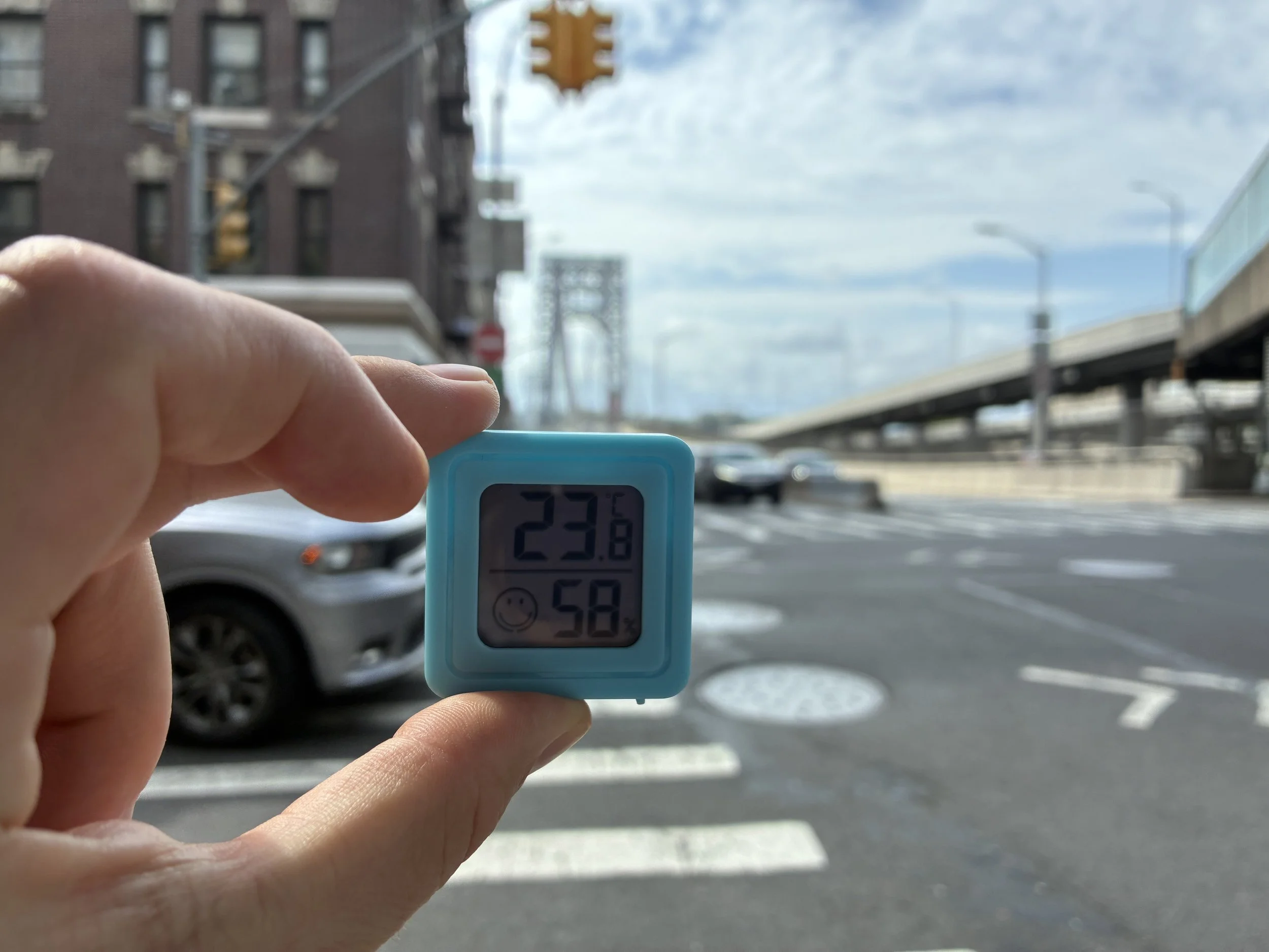 Our goal for the day was to see how far we could walk down the island of Manhattan. The great thoroughfare of Broadway was chosen as our route, and we set out from a latitude of 178th street, where out to the west the impressive structure of the George Washington Bridge is visible soaring across the Hudson River. Our only equipment was a map, protective eyewear, and a small hygro-thermometer (Liz was generous enough to lend us this instrument) to monitor the dangers of the hostile climate.