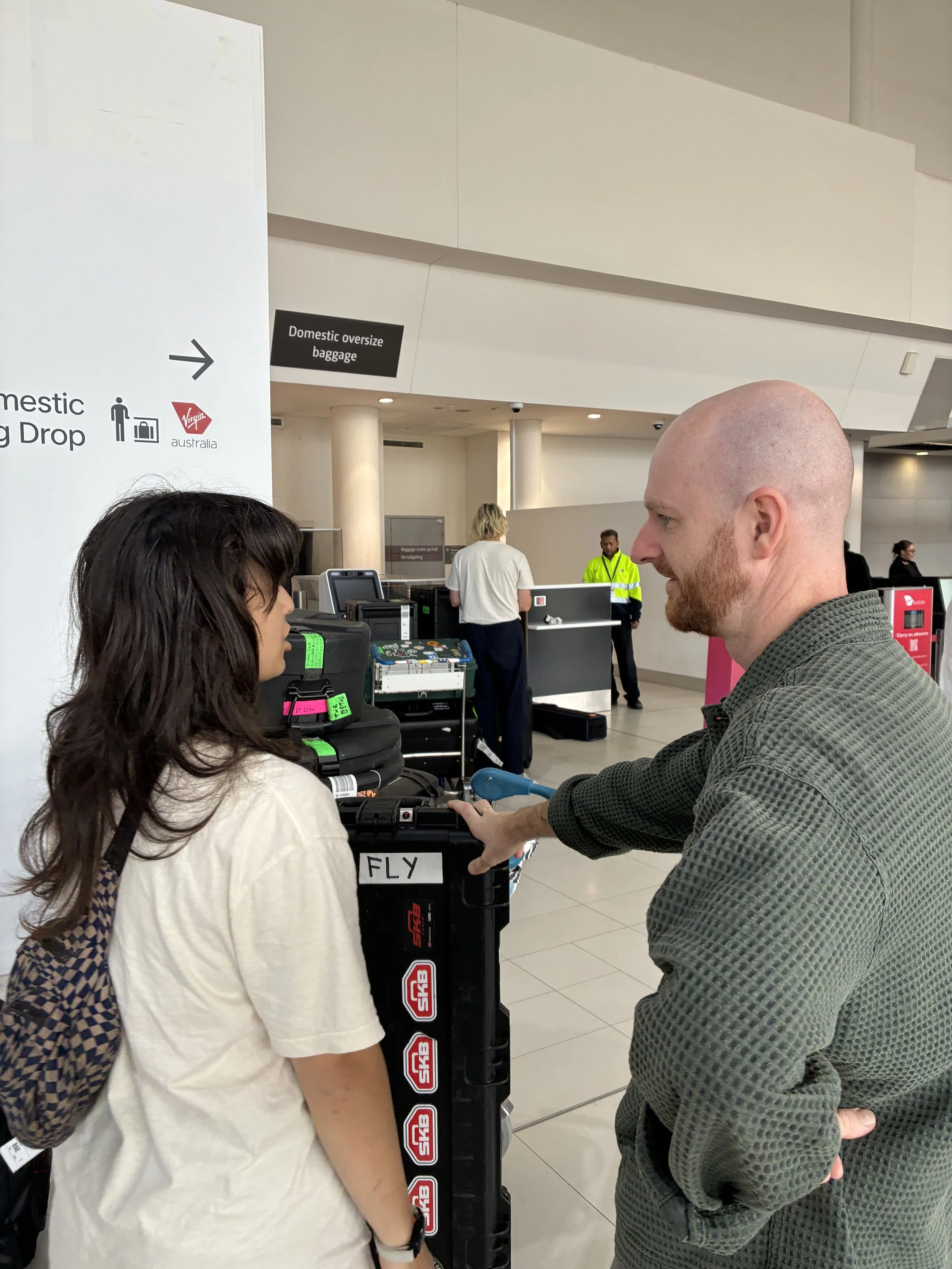 Here we are at the oversize check-in at Perth airport. We didn’t hold anyone up on this occasion and the attendant said we could check as many bags as we wanted. I can only assume that Jonathan Pearce who has extremely high aptitude in all airport processes laid on considerable charm to get us such good levels of service.