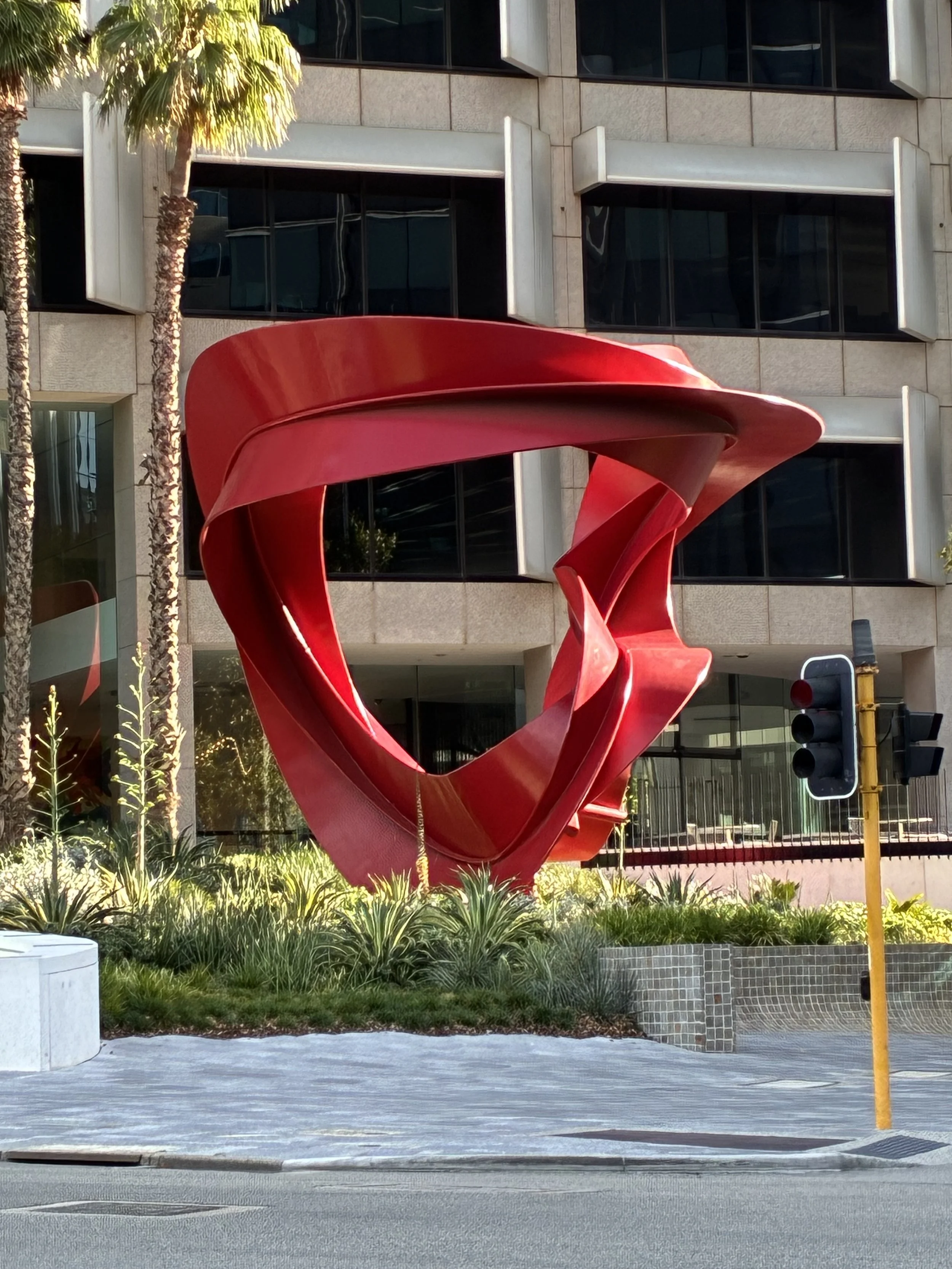 Catching some public art on my walk to a cafe. This one is called Conic Fugue, by American sculptor Charles O. Perry.