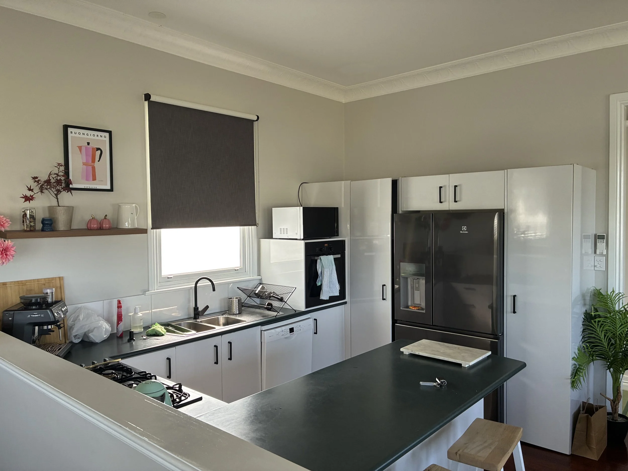 Our airbnb feels a bit like it was designed by a child playing The Sims. It has all the amenities of a modern house but not quite enough space to fit everything.