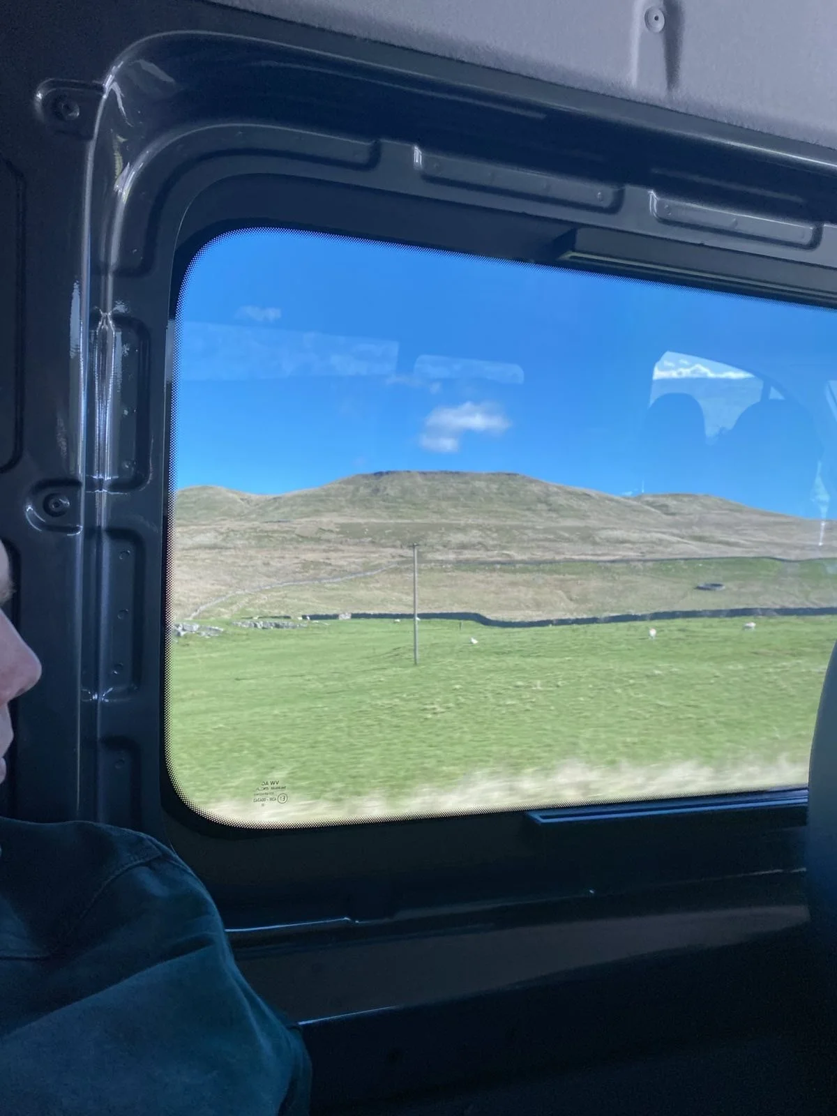 The weather had made some major changes overnight and there were clear blue skies to accompany us on our journey into the north. We drove along the smooth dual carriageway of the M6 motorway, passing through a countryside of lush green fields stitched together with drystone walls and decorated with sheep and wind turbines.