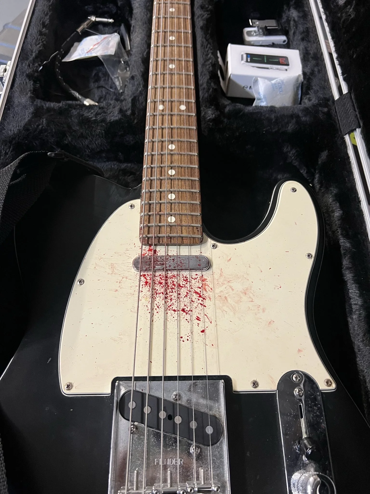 Dateline opened up the show a few hours later with another powerhouse performance. Singer/guitarist Katie Everingham showed fierce determination in the way she played her instrument, refusing to let her guitar pick get in between the strings and the tattered flesh around her fingernail. About halfway through our set I looked down at an empty spot of the stage and saw a blood-spattered guitar pick, waiting to be discovered like a piece of evidence in a crime scene.