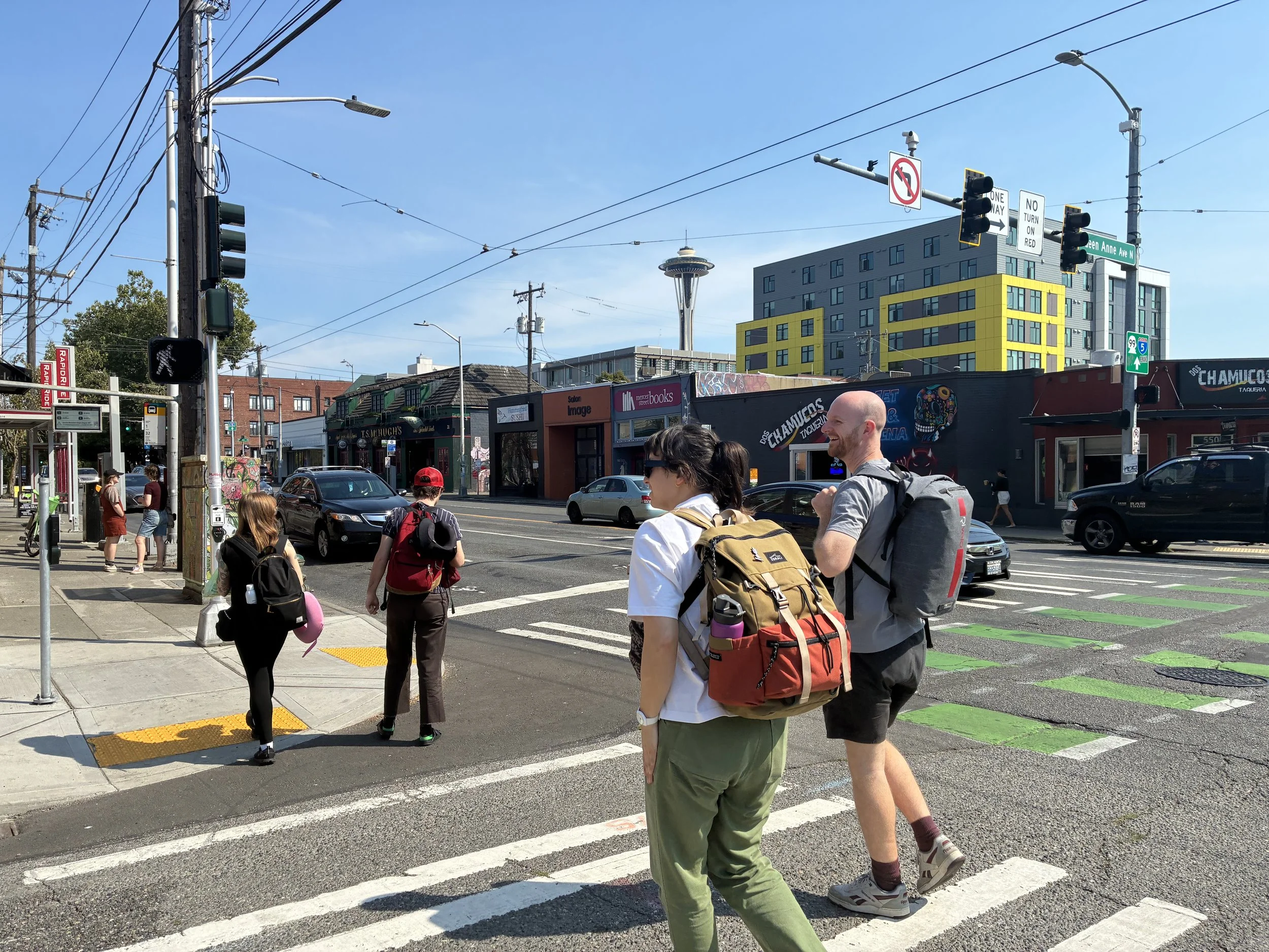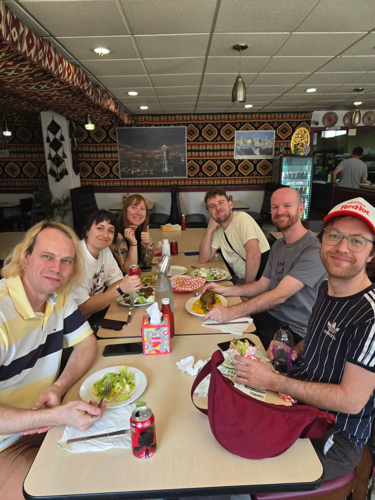 From SeaTac Airport we drove up the glorious I5 and into the city, disembarking from our airconditioned vehicle into a warm and humid afternoon. The skies were clear and blue, and the Sky Needle was ever-present in the background of our photographs. There was an hour built into the schedule for a sit-down lunch, and this was a meal that we used to celebrate Tristan’s USA birthday (this overlaps slightly with his NZ birthday which was critically under-celebrated due to our busy show day).