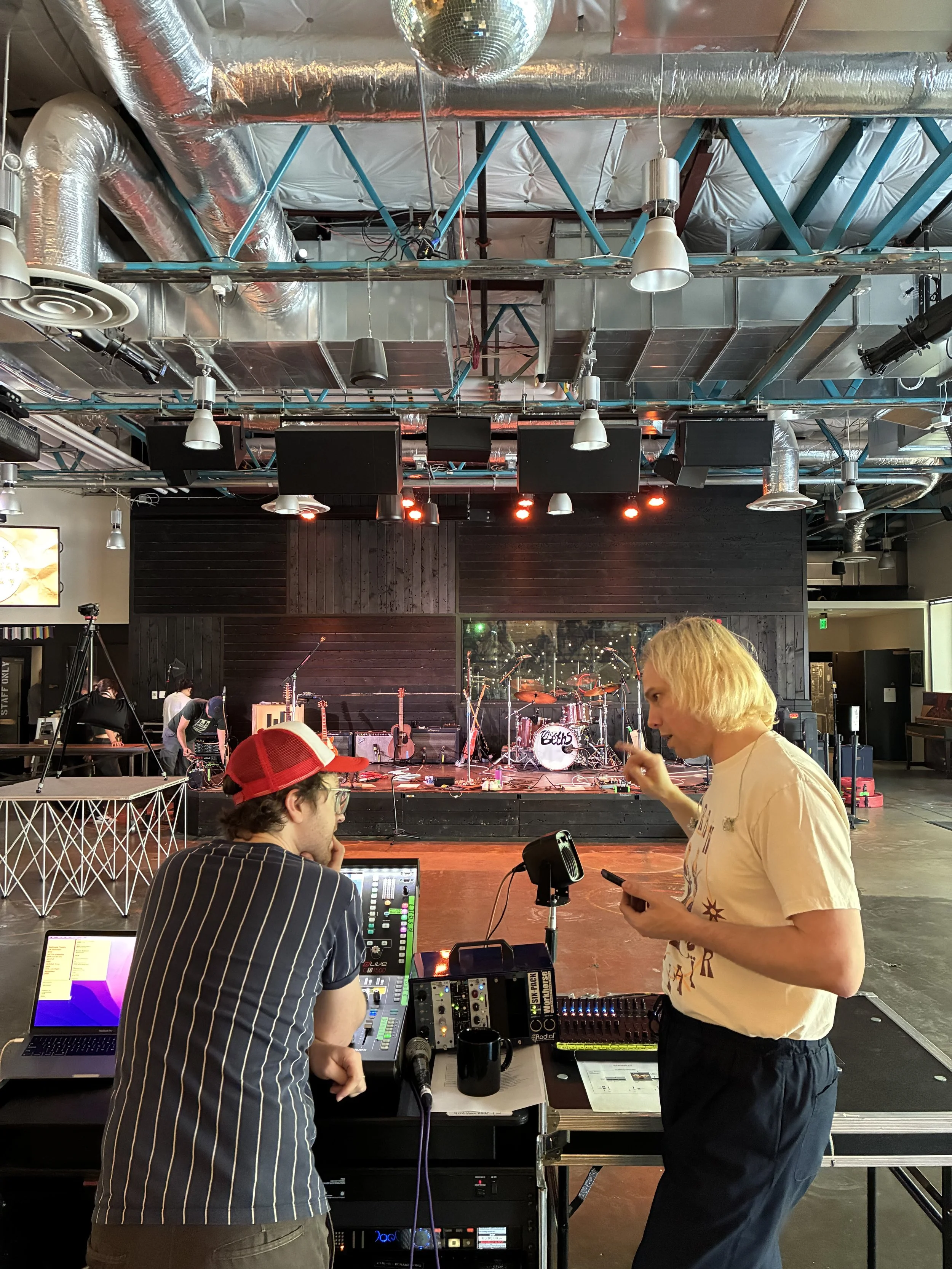 With full tummies we walked a few blocks to KEXP studios and began our work for the day, setting the stage for an early evening show. We were performing in the Gathering Space, a large room adjacent to the KEXP studios that functions as a community hub with a café, comfortable table seating, and free Wi-Fi. This was an event put on for supporters of this fine public radio station, the people that keep music and important information on the airwaves in a time where government funding is fast disappearing. They were a quiet and polite audience, happy to stand and listen patiently while we made our way through a set of completely new material.
