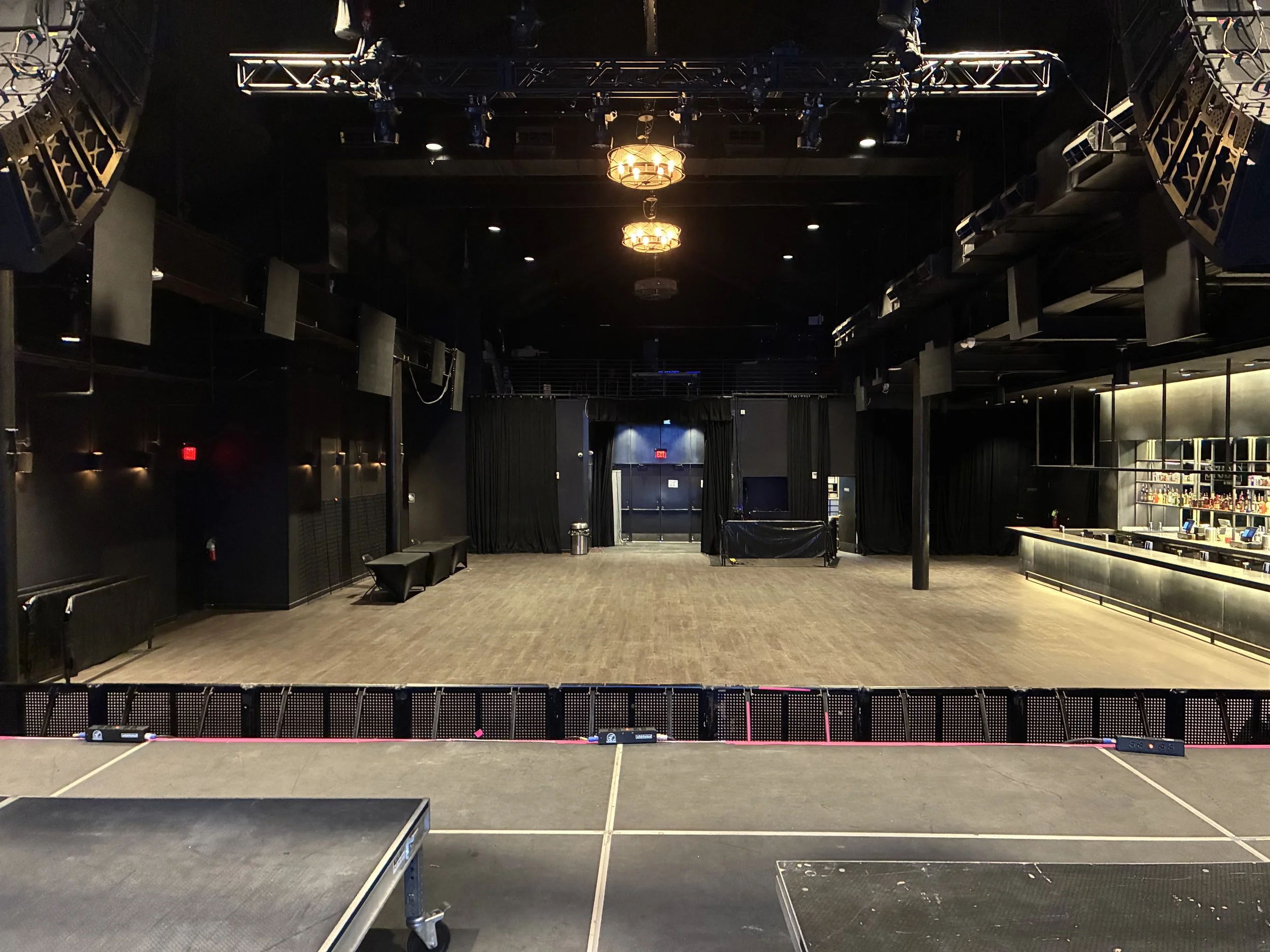 We arrived in Dallas perfectly on time for load-in and we quickly emptied the U-Haul so it could be returned with the minimum of rental fees. The load was through a large roller door and up an easy ramp to the stage which looked out across a long, brick room, one of the most aggressively air-conditioned spaces I have experienced in a long time. This cooling system was able to maintain what felt like 14°C (-190°F) and we had to get into our winter clothes for soundcheck. In all fairness the room sounded great, something to do with wavelength stability at lower temperatures, and the stage sound was extremely well behaved too.