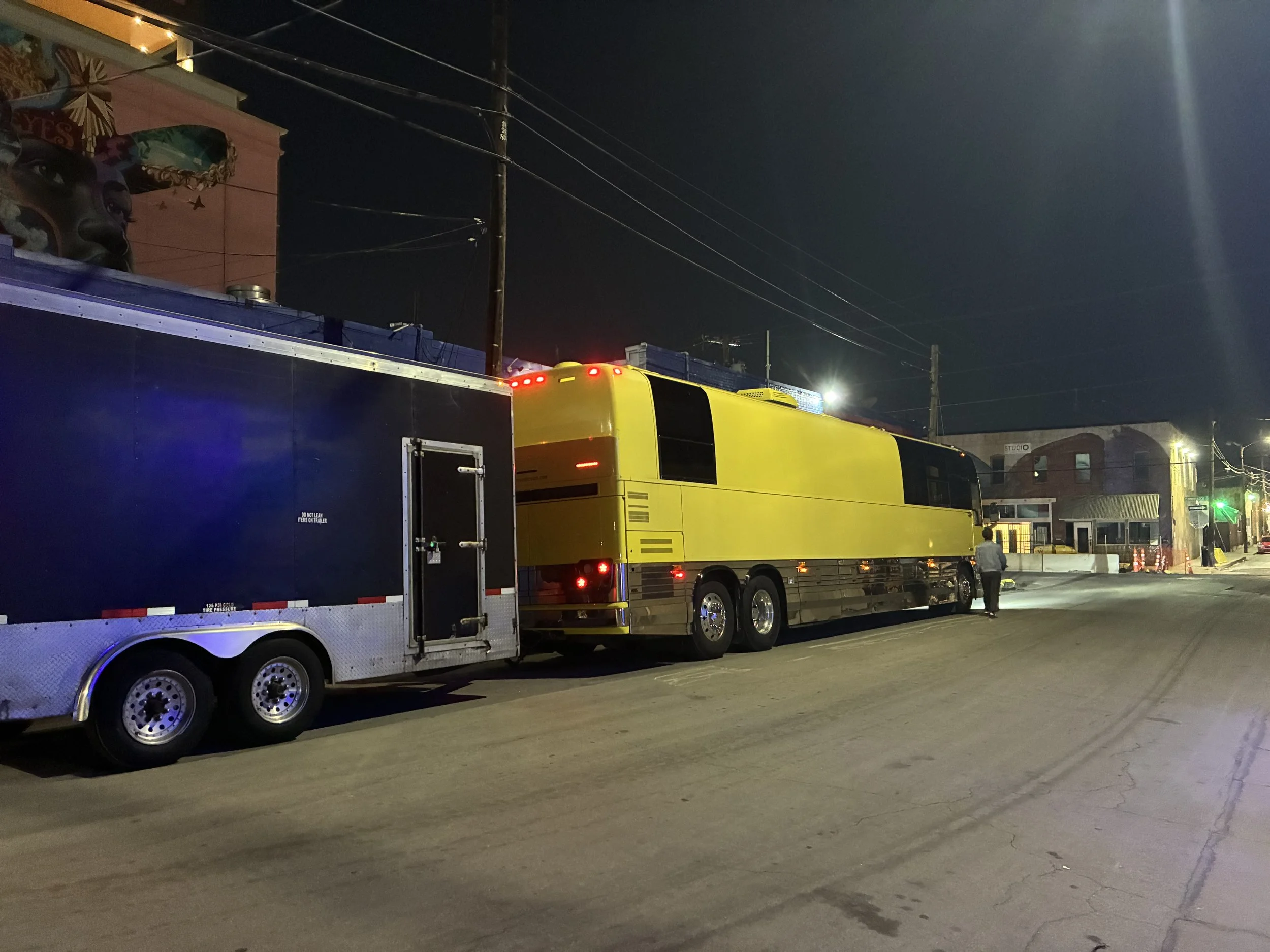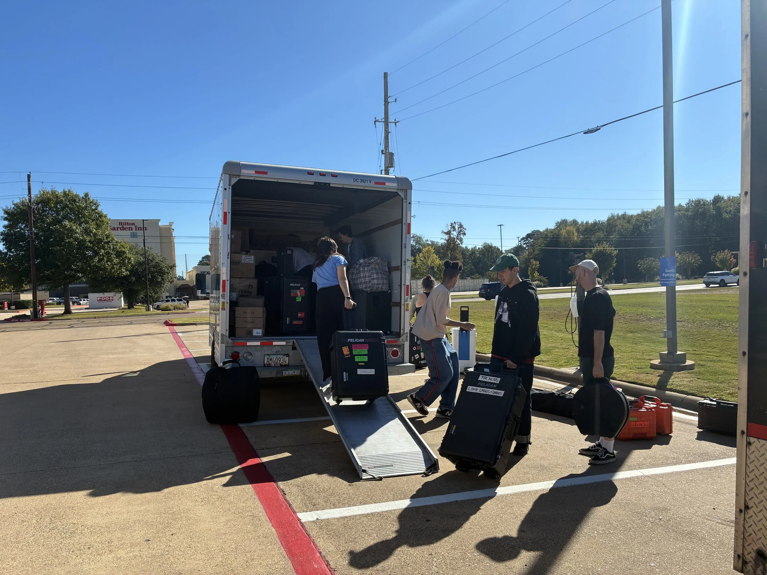 Tour manager Annie Tunnicliffe was all over this situation and by the time I awoke in the morning a plan had been hatched to get us and our equipment to Dallas in time for the show. She turned up at 10am in a U-Haul and we set about unpacking our trailer and rolling everything up the ramp into the back of this sizeable cargo truck. We had two rental vehicles to move all the human bodies and Tristan had the honour of driving the Phoebe Rings band in a serious looking Volkswagen SUV while Erin drove the remaining Beths members in one of the most powerfully spacious minivans on the market, the Chrysler Pacifica (I’m sorry Toyota Sienna owners; they are great too!)