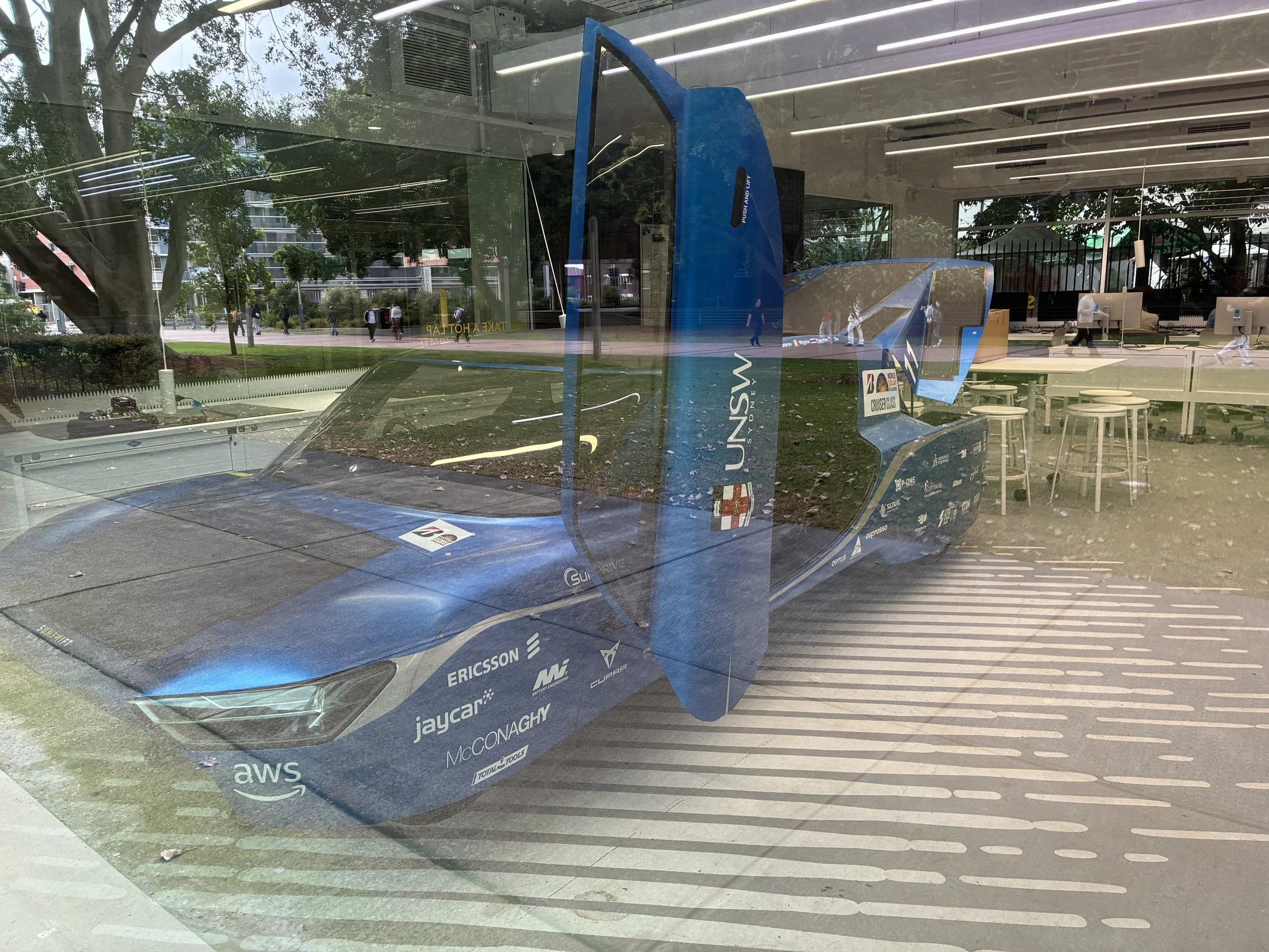 The solar power endurance race car in the lab next to our venue. Perhaps an ancestor of this vehicle could replace the Kia Carnival as our perfect rental car.