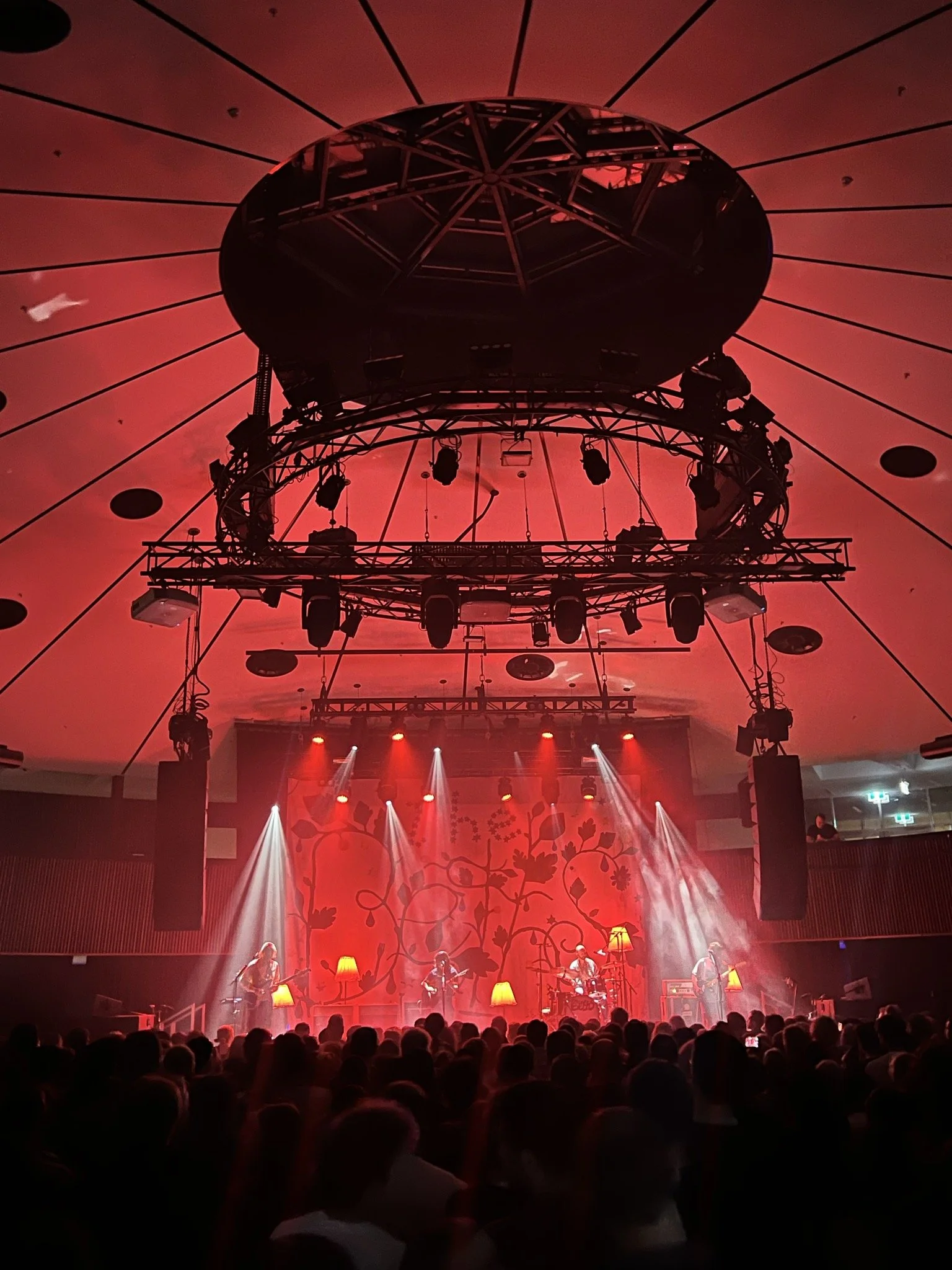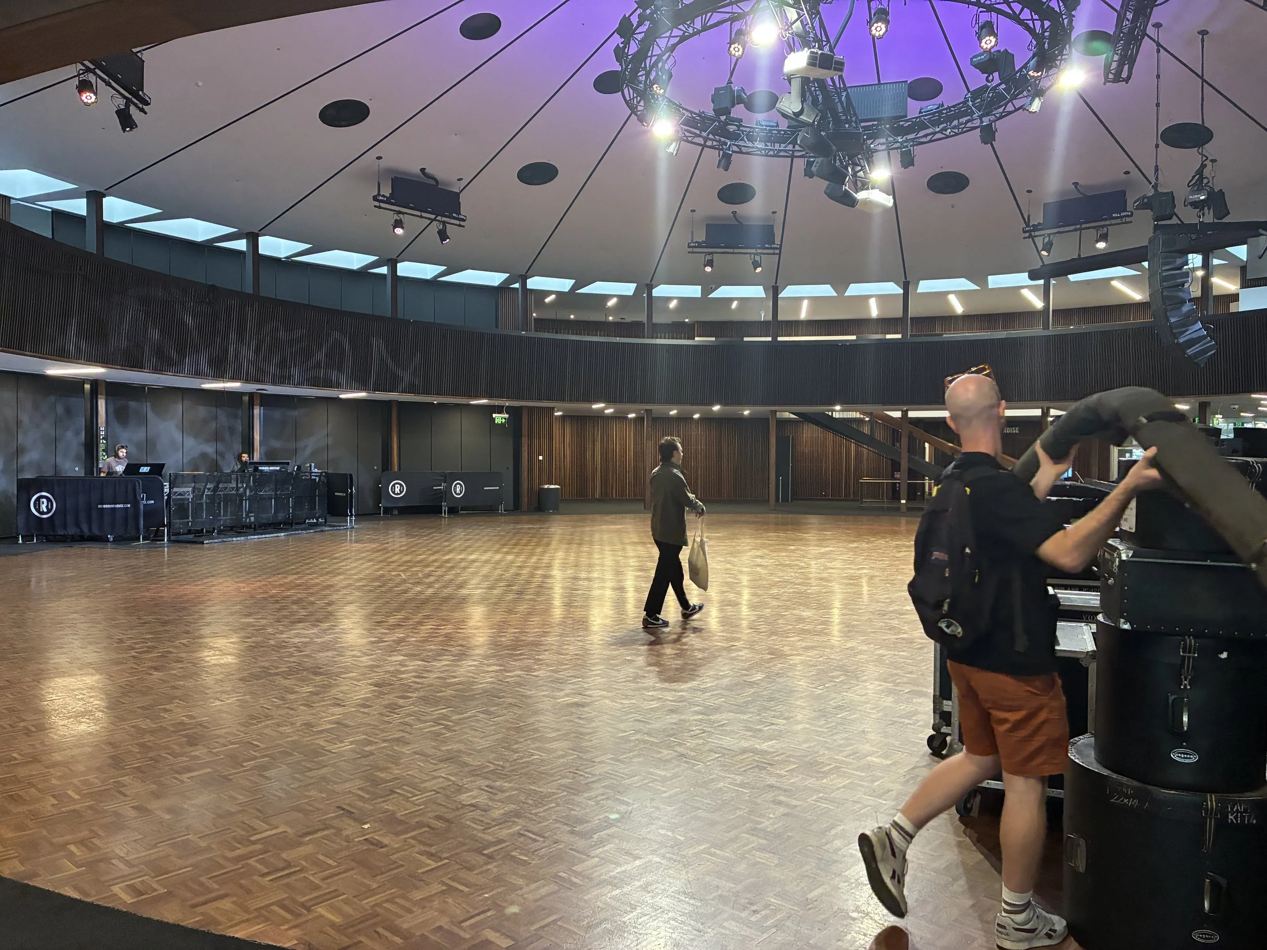 The room was very round. While it may not have housed a Victorian-era train turntable like the London venue of the same name, it still possessed a gentle curvature and a satisfying symmetry. It was acoustically challenging for us at soundcheck but later on that evening when the polished wooden floor was protected by the numerous dense sacks of bone and liquid that doubled as patrons of our band, the sound turned out to be very good.