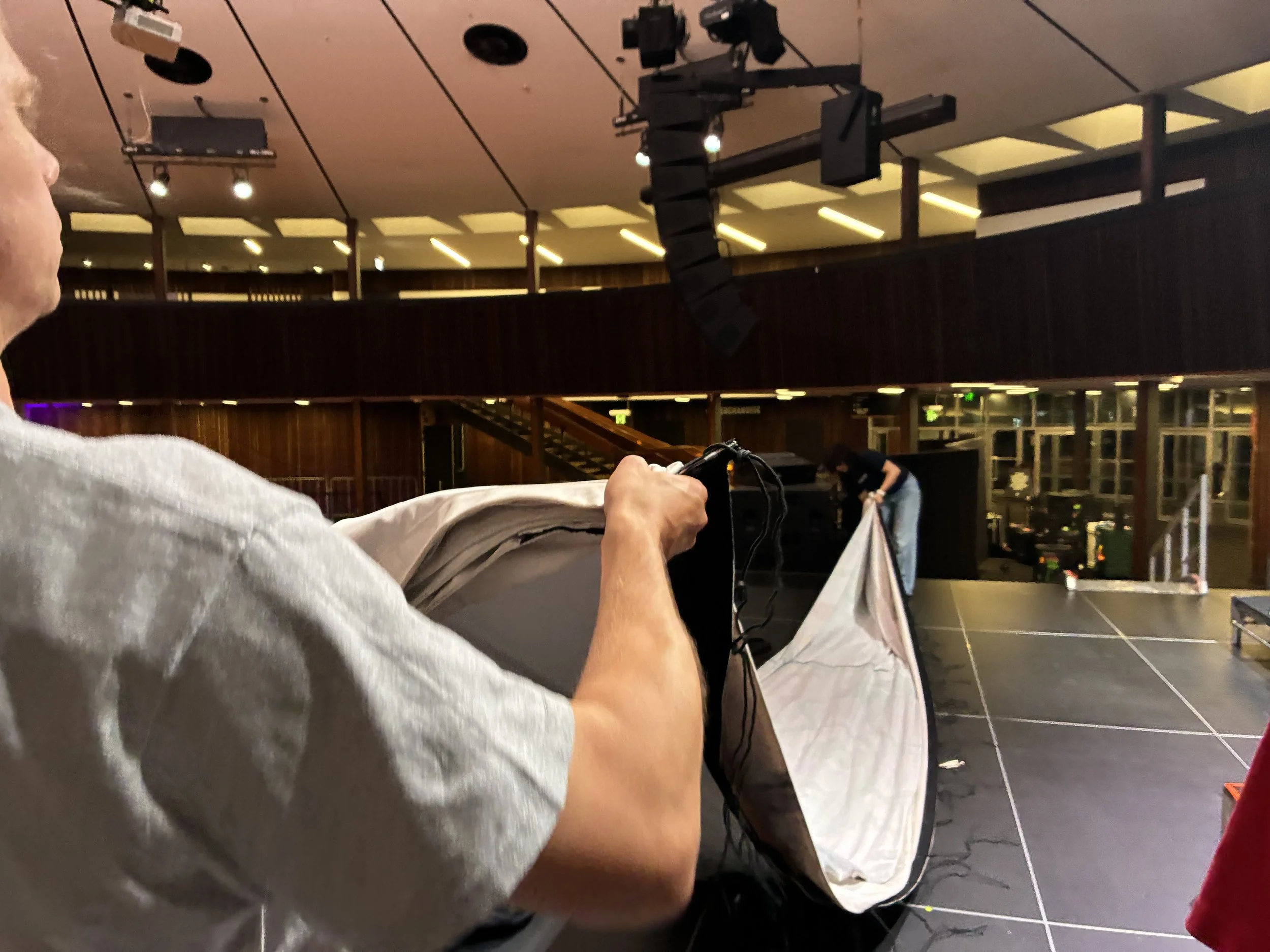 Usually the final job of the pack down, folding the banner.