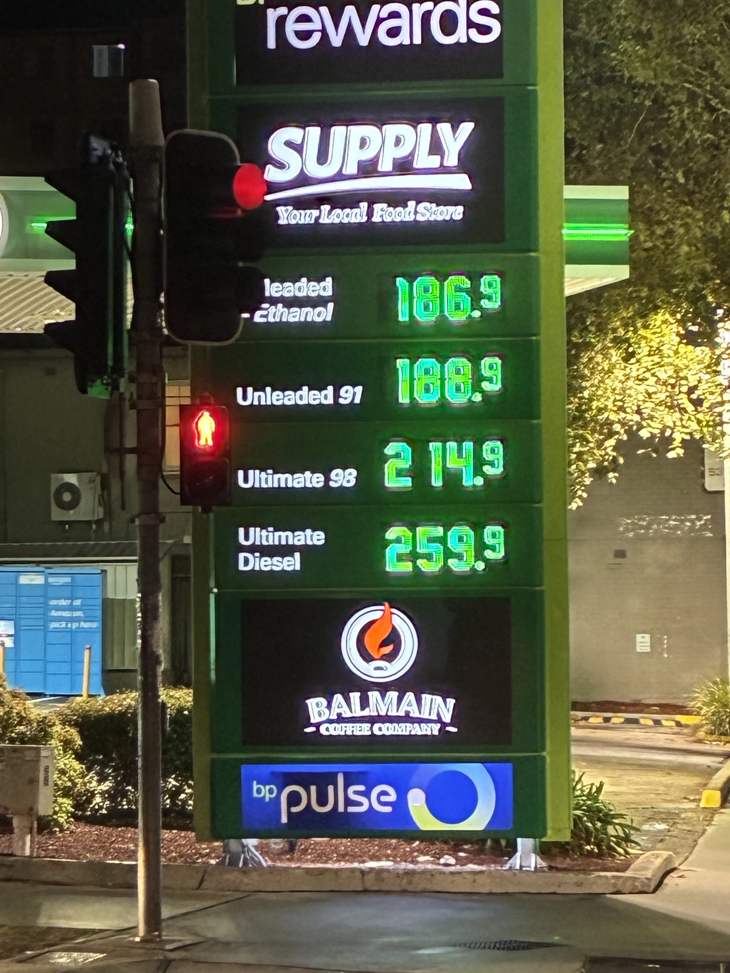 Here is a petrol price I saw while I was out picking up dinner. Even cheaper than Brisbane! I’m not looking forward to returning to NZ petrol prices.