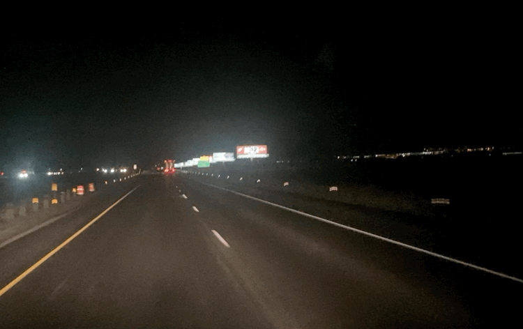 Everything was bathed in a golden light as we passed the Ruby Mountains and descended toward the Utah border. When we finally reached the great Salt Lake Desert the sun was completely gone, replaced by an impenetrable darkness on each side of the highway.